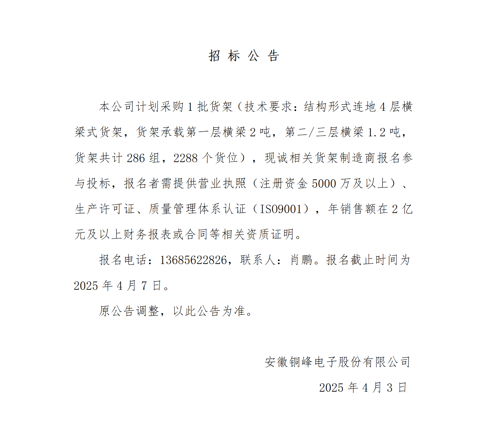 铜峰公司智能仓储立体仓库货架采购招标公告_01