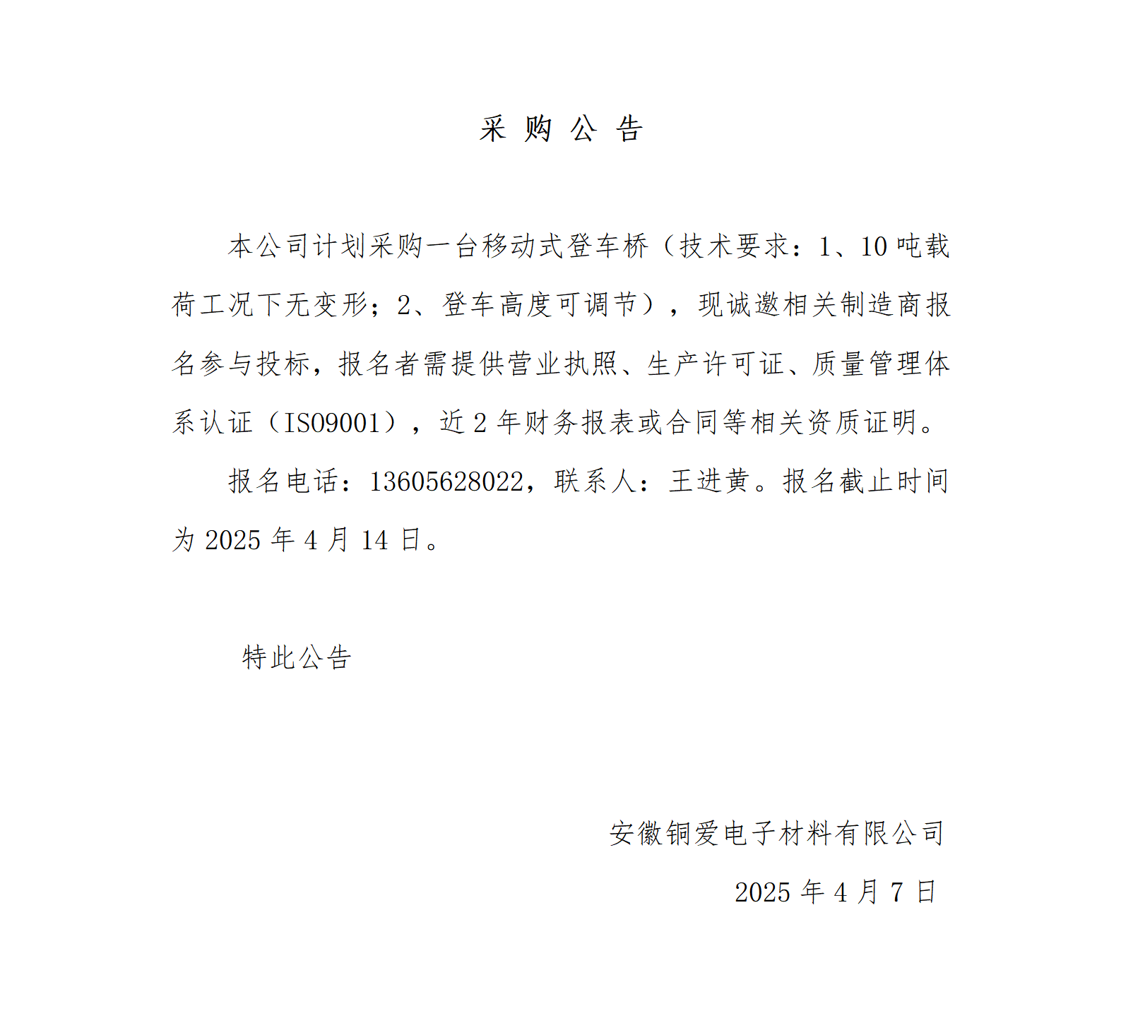 铜爱公司移动式登车桥采购采购公告_01