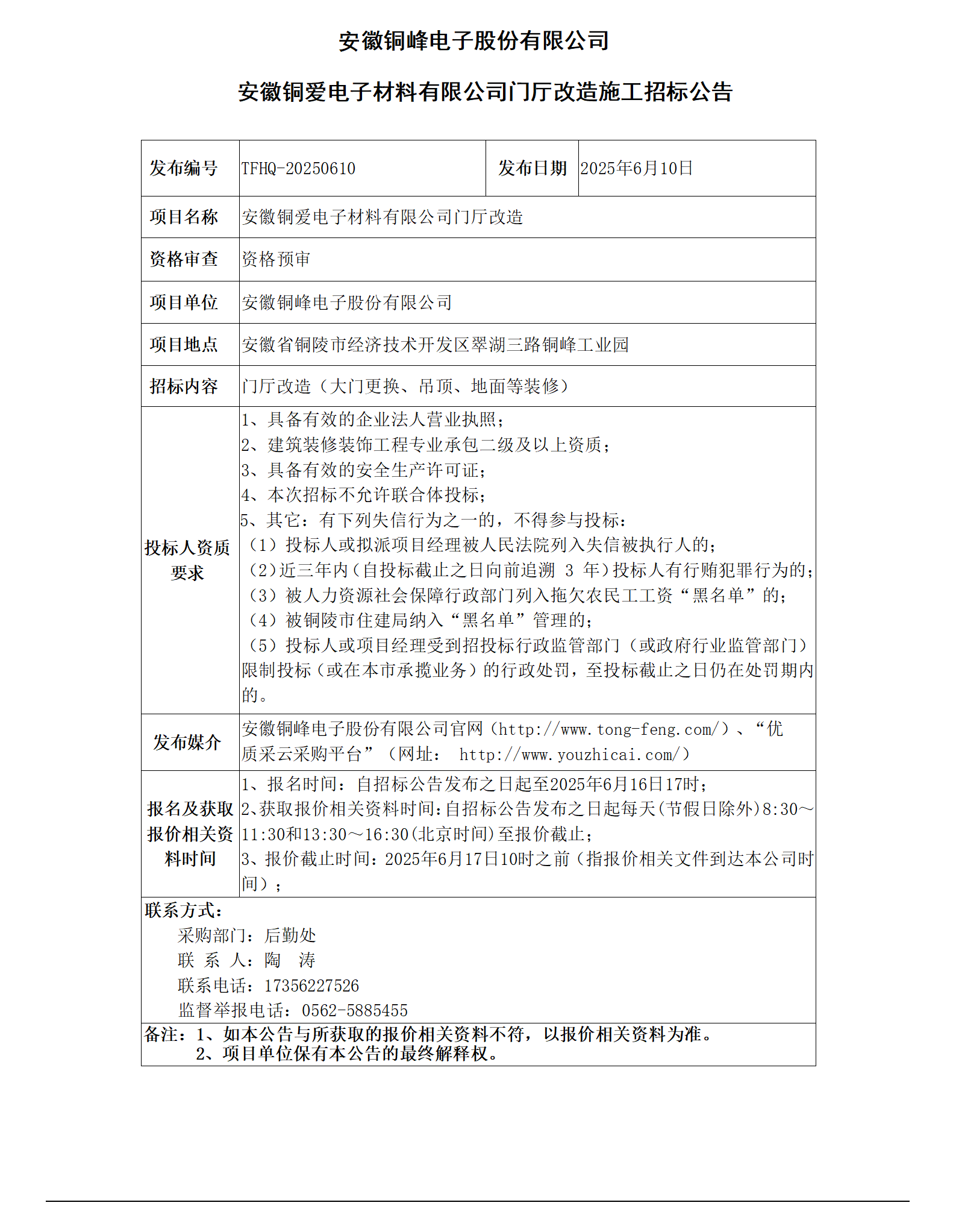 世界杯下注 (铜爱电子公司门厅改造招标公告)_01