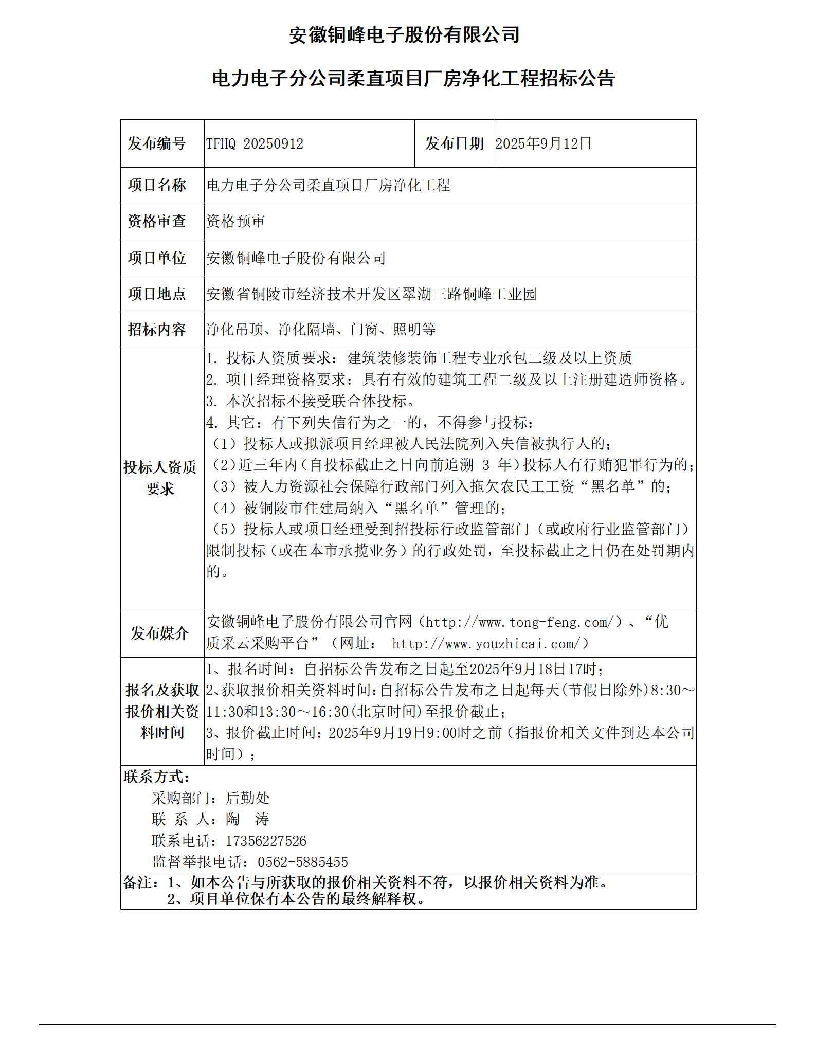 01世界杯投注网站 (电力电子分公司柔直项目厂房净化工程 招标公告)_01