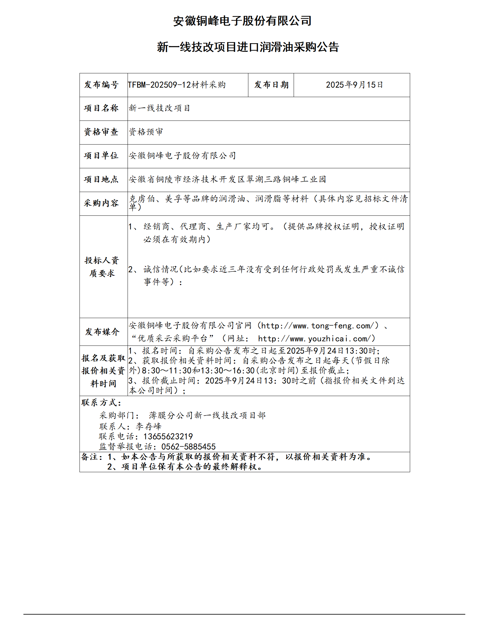 世界杯投注网站 (新一线技改项目进口润滑油采购公告)_01