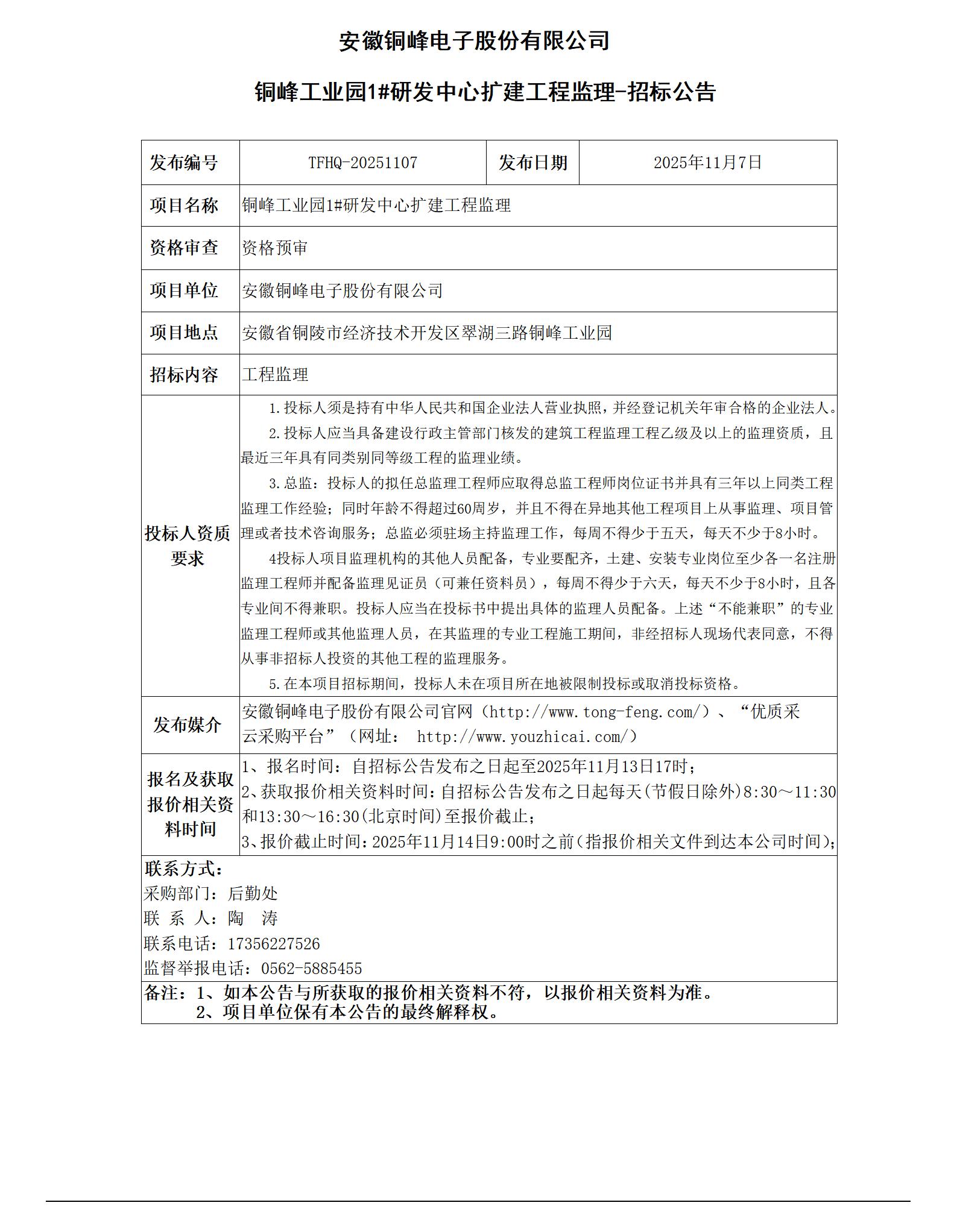 世界杯投注网站 (铜峰工业园1#研发中心扩建工程监理 招标公告)_01