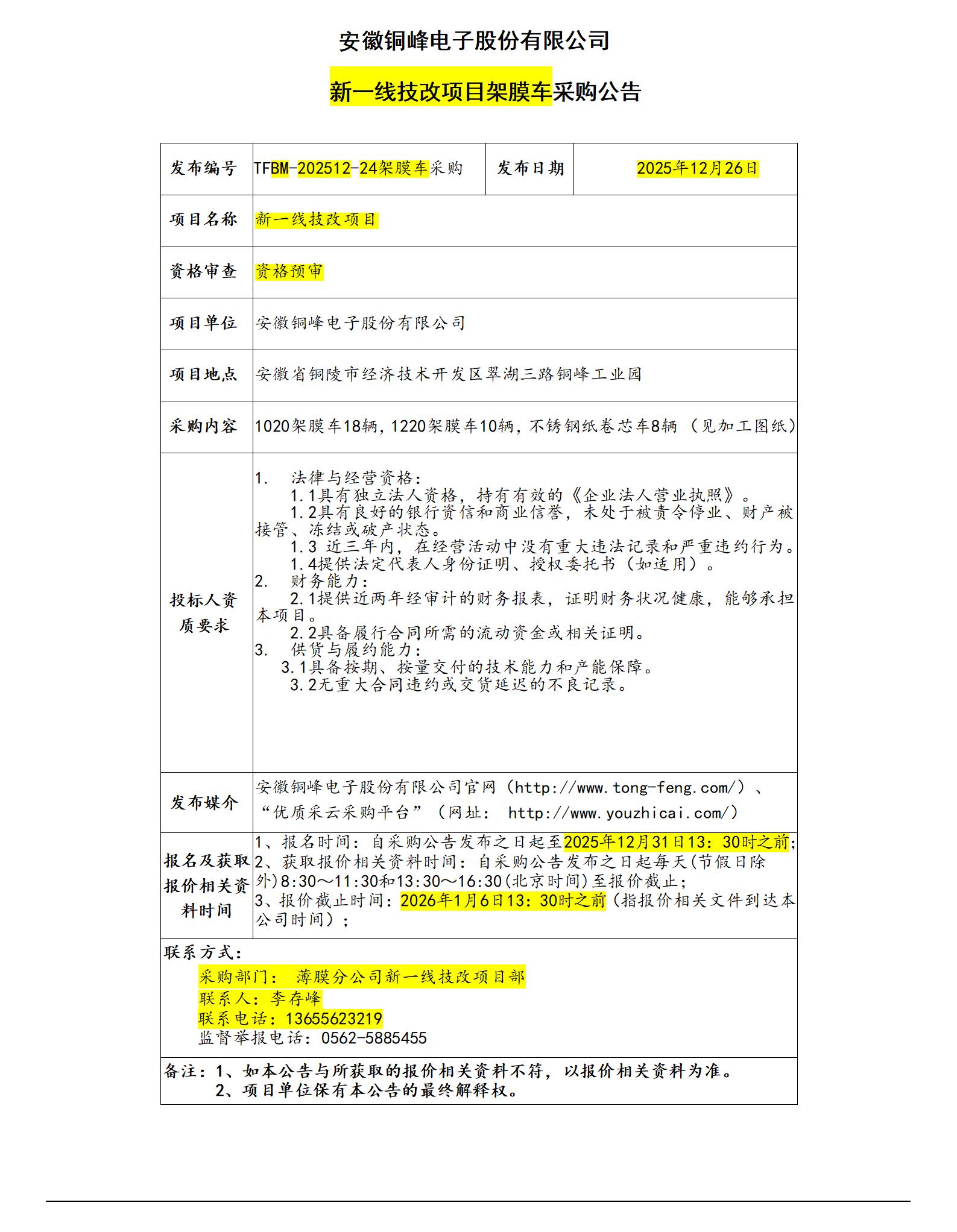 世界杯投注网站 (新一线架膜车采购招标公告)_01