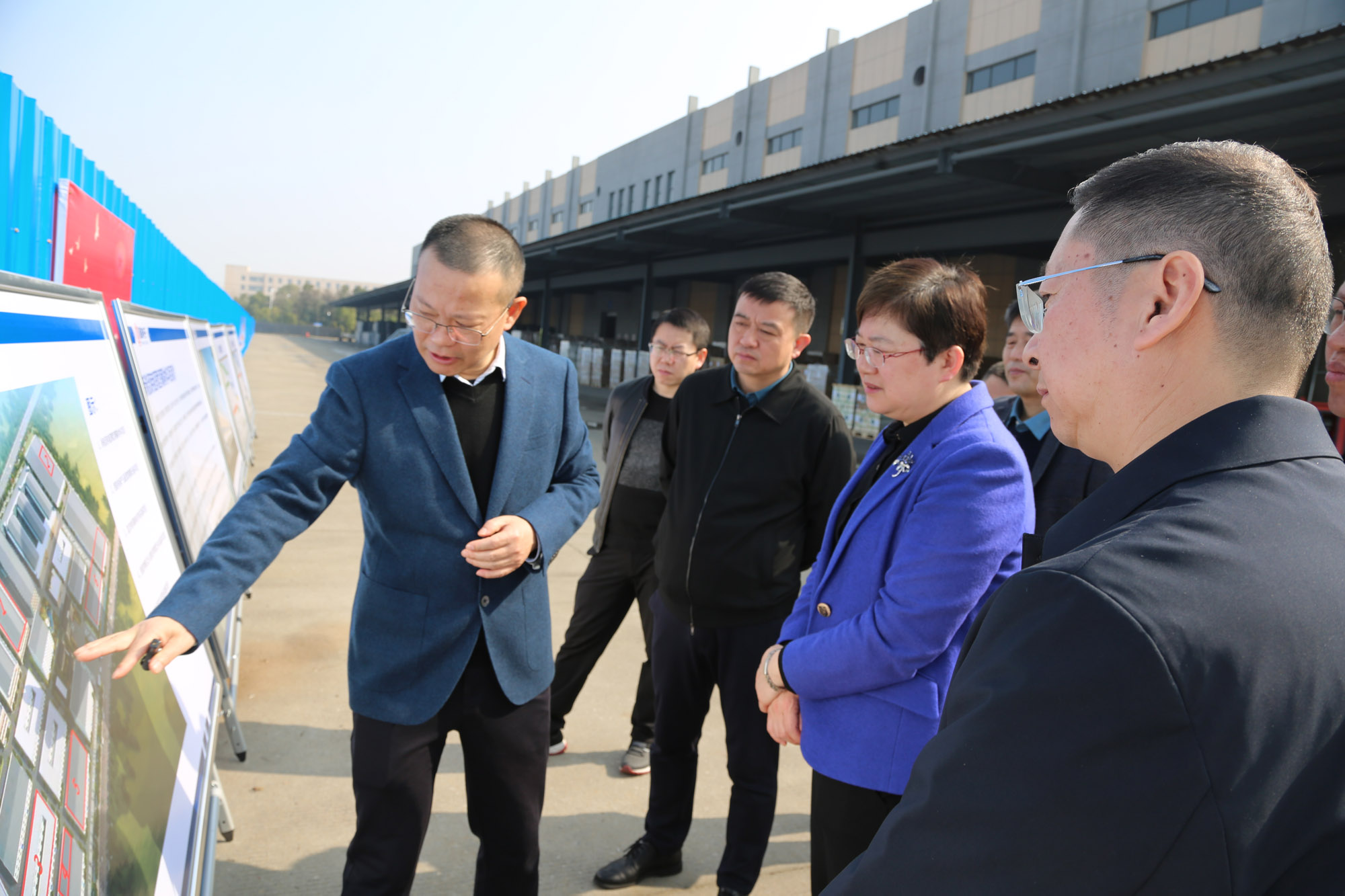 在公司重点项目建设现场,昌红梅认真听取黄明强关于企业经营和项目建设等情况的汇报,详细观看公司2021年以来谋划实施的六个重点项目介绍展板。