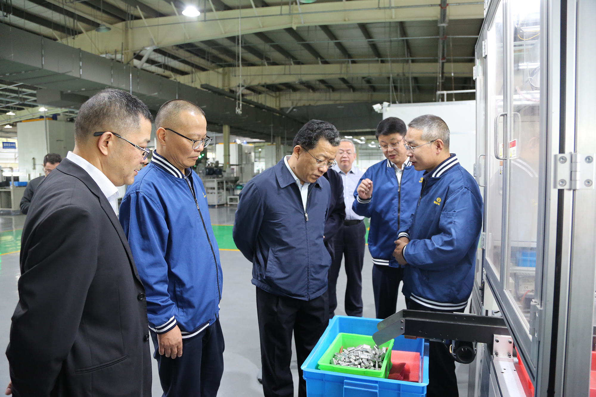 在峰成电子新能源汽车用电容器项目生产车间,工人正在操作一台台自动化生产设备赶制订单,呈现出一片欣欣向荣的景象。丁纯仔细了解项目建设进度、产品工艺流程和市场开拓情况,希望企业抢抓产业风口,加快新品研发,扩大生产规模,开拓更大市场。