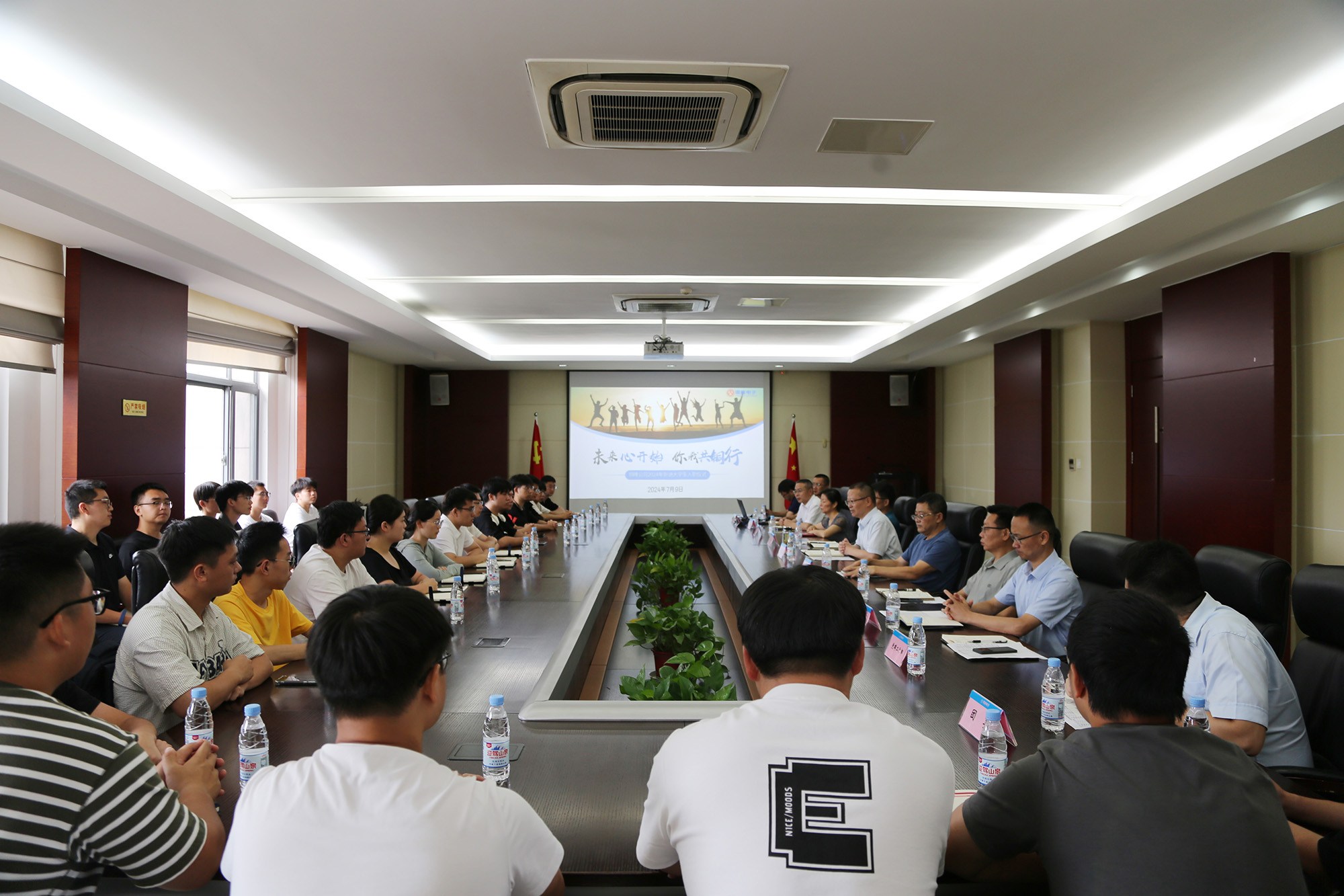 7月9日上午,公司于办公楼一楼会议室举办2024年新进大学生入职仪式,黄明强、储松潮、郭传红、潘世宇、李骏、何晓明、潘焱尧等在铜公司党政领导班子成员,公司人力资源处、党群工作部、团委等部门负责人和27名新进大学生共同出席了入职仪式。