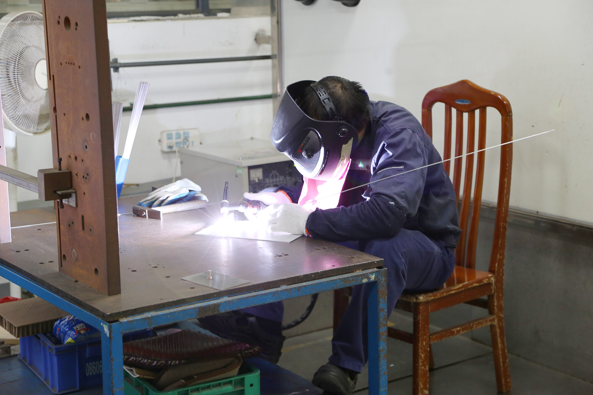 在钳工比赛现场,选手们沉着应对,认真答题,并在有限时间内通过量、锉、锯等加工方法,完成零件的加工。大家各自在操作台上紧张忙碌,不时对产品图纸进行对比,力求精准,充分展现了技能和职业素养。在氩弧焊工比赛现场,弧光四溢,焊花飞舞,选手们凭借着熟练的技能在操作台上测量后用焊接设备焊接材料完成组对焊接件的焊接。