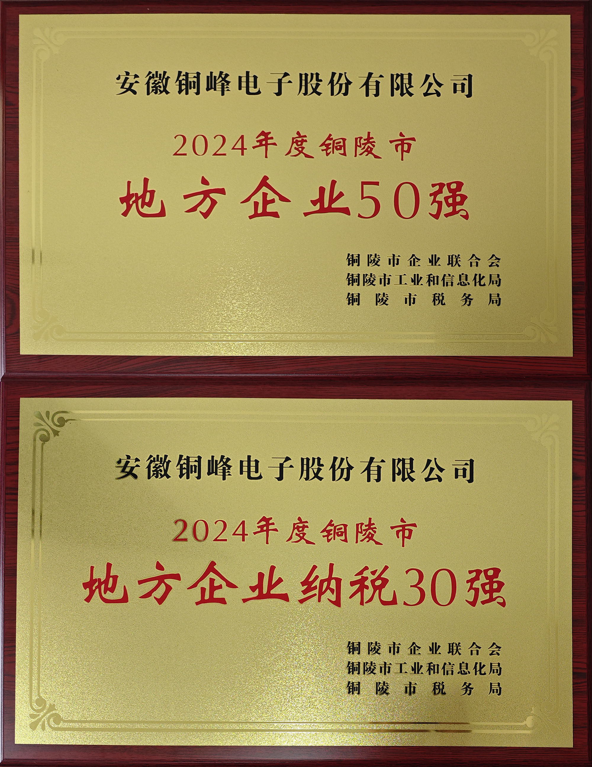 8月8日下午,由市企业联合会、市工信局、市税务局主办的2024年度铜陵市地方企业50强、地方企业纳税30强发布会举行。公司凭借突出的经营业绩与纳税贡献,荣登“地方企业50强”“地方企业纳税30强”双强榜单。