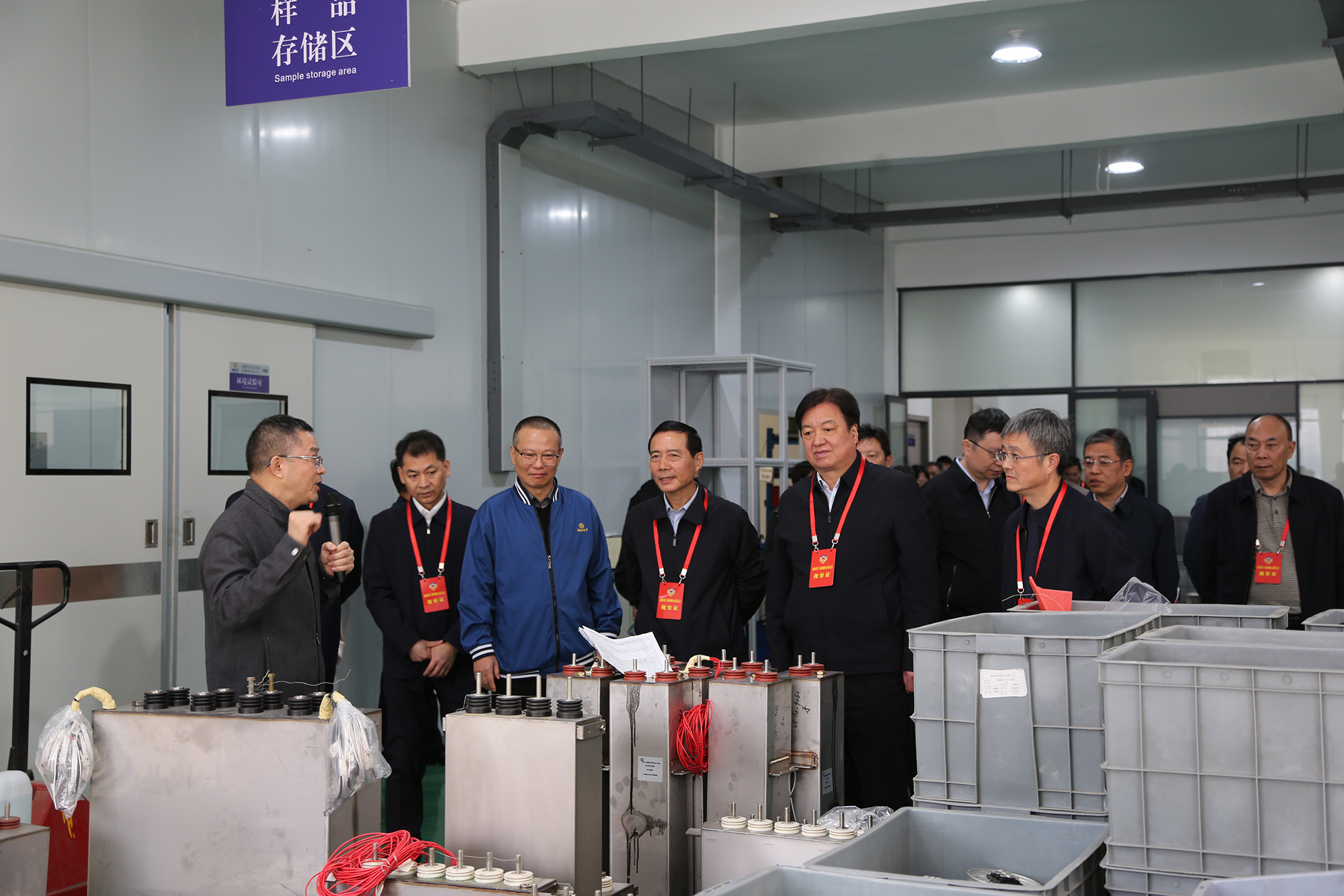视察组一行来到公司高储能电容器及高性能介质薄膜材料安徽省重点实验室,实地调研企业研发平台建设、产品开发、人才培育及成果转化等情况。公司领导向视察组一行汇报了企业项目建设、技术创新、产学研合作和重点实验室运行等情况。