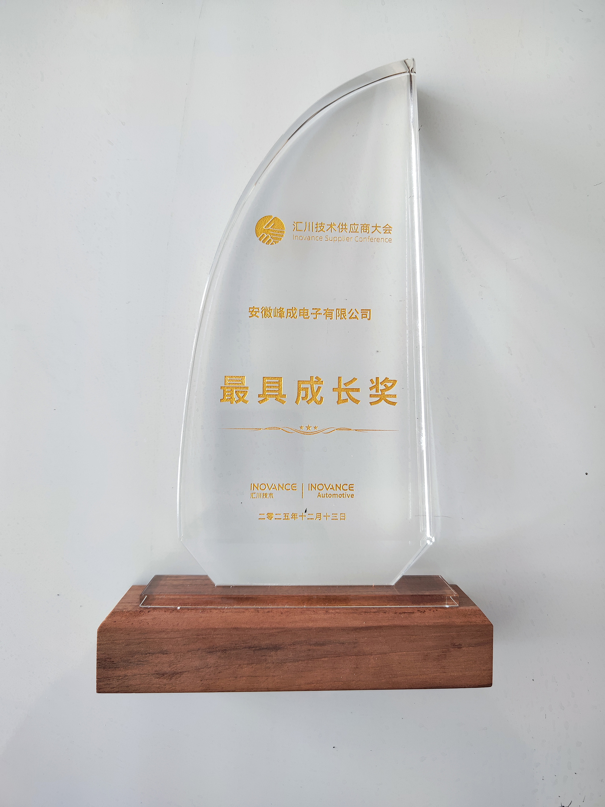 12月13日,以“数驱质领,聚势全球,共创未来”为主题的汇川技术2025供应商大会在苏州隆重举行。峰成公司凭借在技术研发、产品品质、交付及合作发展中的亮眼表现,从众多合作伙伴中脱颖而出,荣获汇川技术颁发的供应商“最具成长奖”。