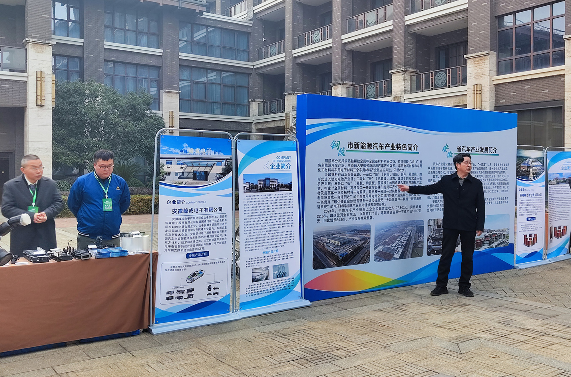 12月16日至17日,2025安徽省智能网联新能源汽车产业链(铜陵)供需对接会隆重举行。公司携峰成公司、精密公司受邀参会并展示新能源汽车配套领域的系列产品与创新成果。在巡展环节,市领导杨宏星、孔涛、郑刚、胡启书、马军,省工信厅副厅长施力,市政府秘书长钟锋,以及参会代表认真观看了公司展台。展会期间,参会代表还来到公司企业展厅与峰成公司新能源汽车用电容器生产线实地考察。